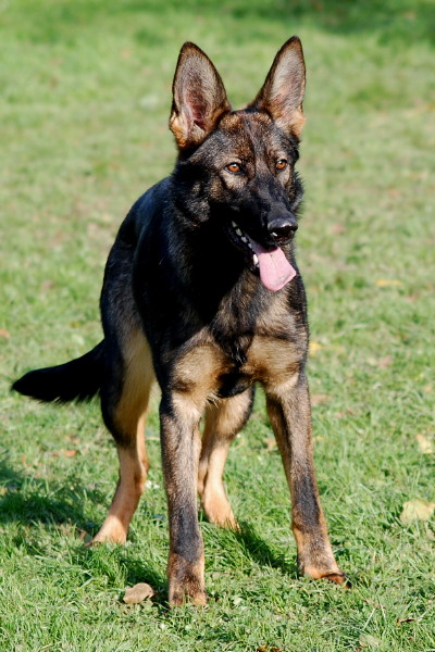 etwas betont gestreckt, besonders gut pigmentiert, femininer Kopf, hoher